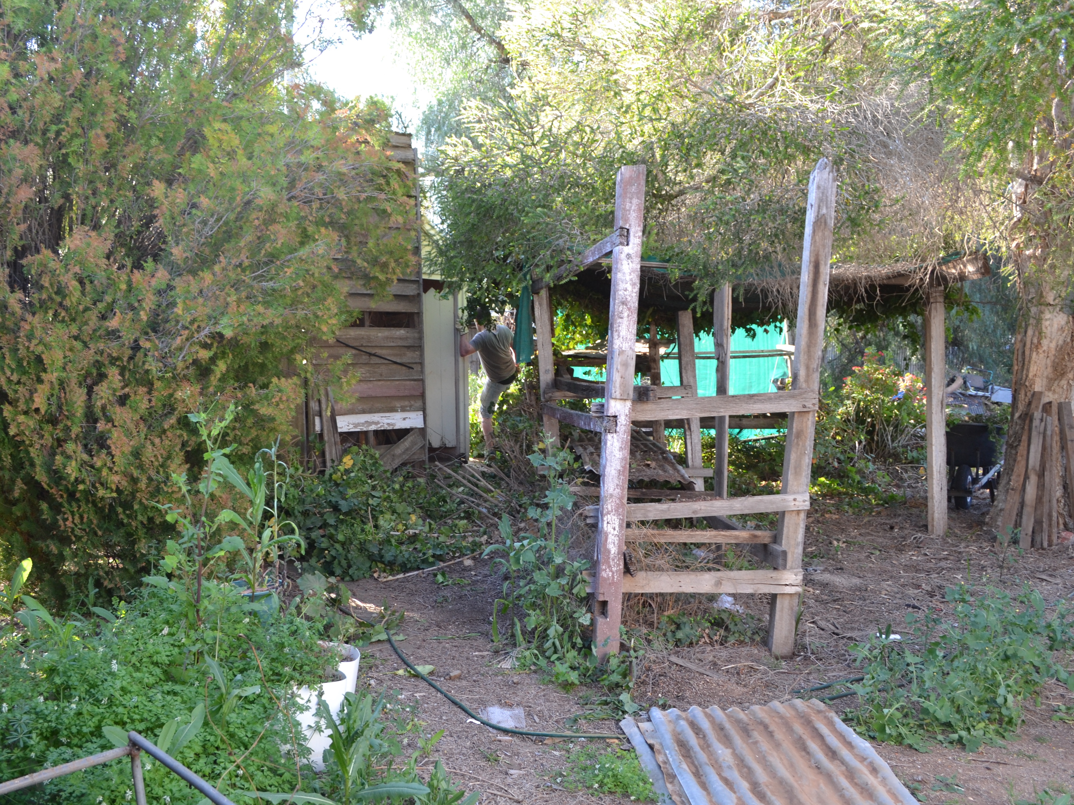 With grass mown (actually it was more like hay) and tap fixed I joined Shirleen in demolishing the wardrobes in the front rooms, some of which went on the firewood plie and the rest earmarked for the tip.