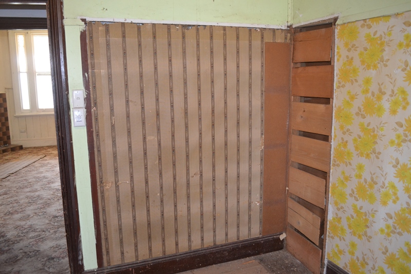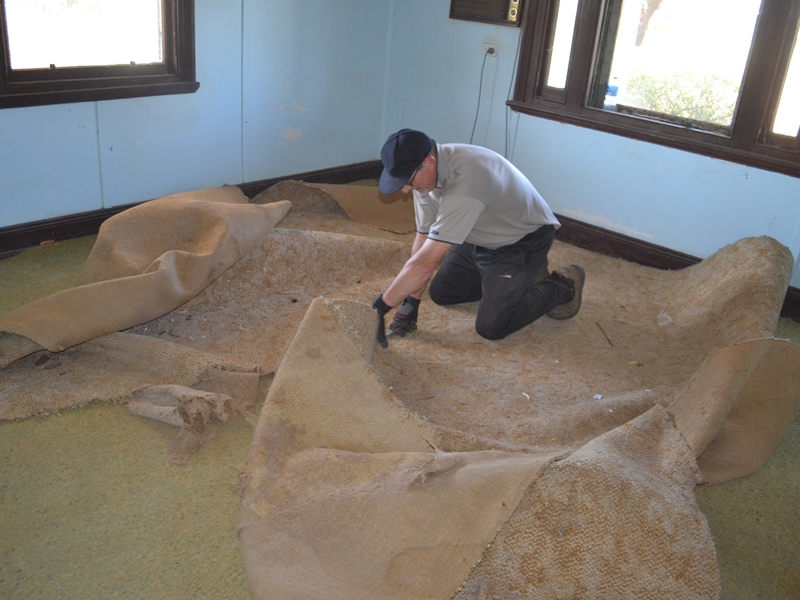 Whilst I was at the tip Shirleen had started to rip up the carpet in one of the front rooms – boy, what a dust storm that created! The carpet obviously hadn’t been vacuumed in a long time. This room had traditional loose laid carpet and underlay – unfortunately the other front room had carpet with a yucky black rubbery foamy backing and had been glued down and when the carpet came up the backing stayed down. Scraping the floor with a shovel and then vacuuming it seemed to remove it OK but the process created this fine black cloud of something resembling coal dust – I hope we don’t get black lung disease as a result!