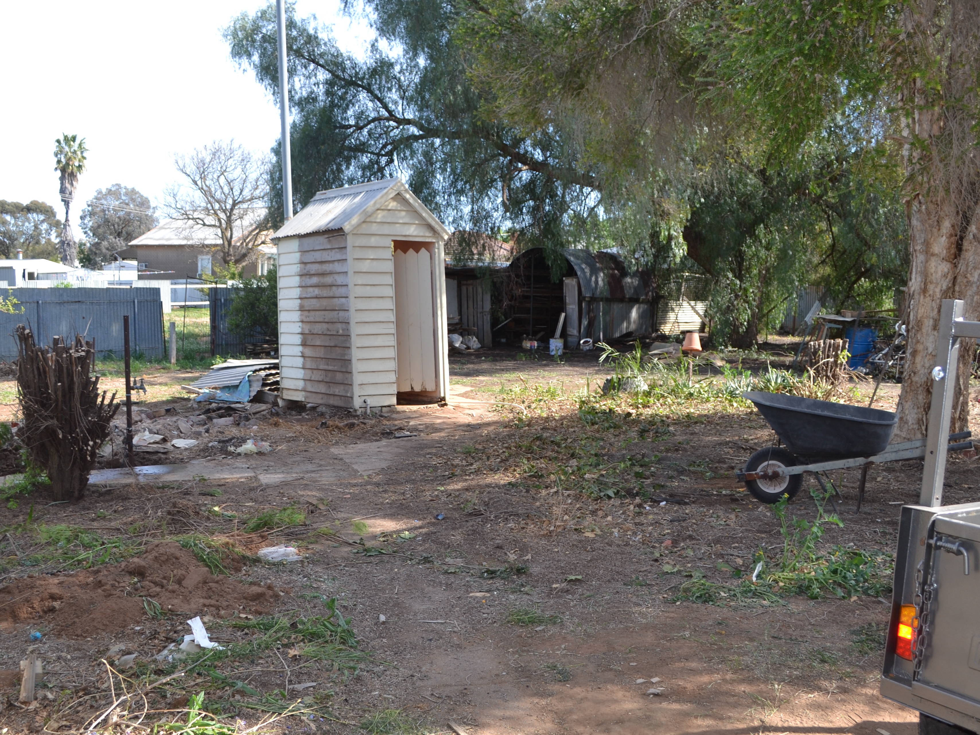 After spending a couple of hours at the show we went back to the house to start a few of the jobs we had earmarked to do – me to mow the grass (again!) then fix the water pipe we broke on the last trip when we demolished the old laundry, and Shirleen to continue the cleanout of the front rooms.