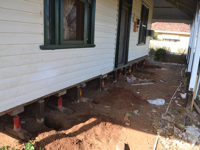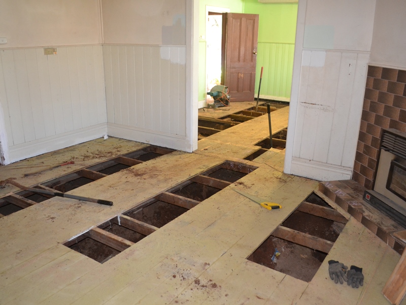 We were pleased to see that most of the stumpholes had been dug and the perimeter of the house had been jacked up and the stumps removed, although it was a little sad to see a heap of floorboards removed from the kitchen, lounge and master bedrooms allowing more light (and dirt) into the house than the windows and doors!