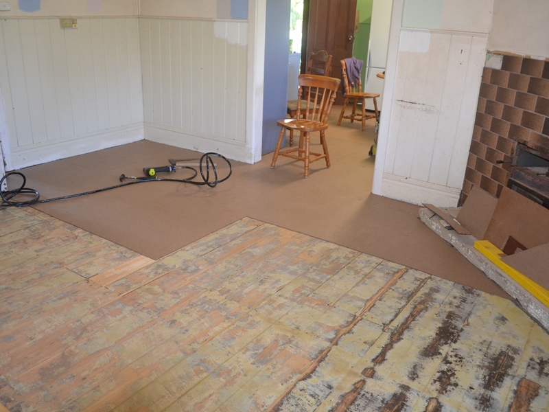 Monday morning was again cold but sunny, and the only task remaining was to clear the lounge room of tools, timber offcuts and empty glue cartridges, and thoroughly vacuuming in preparation for sealing the underlay, which we finished by late morning.