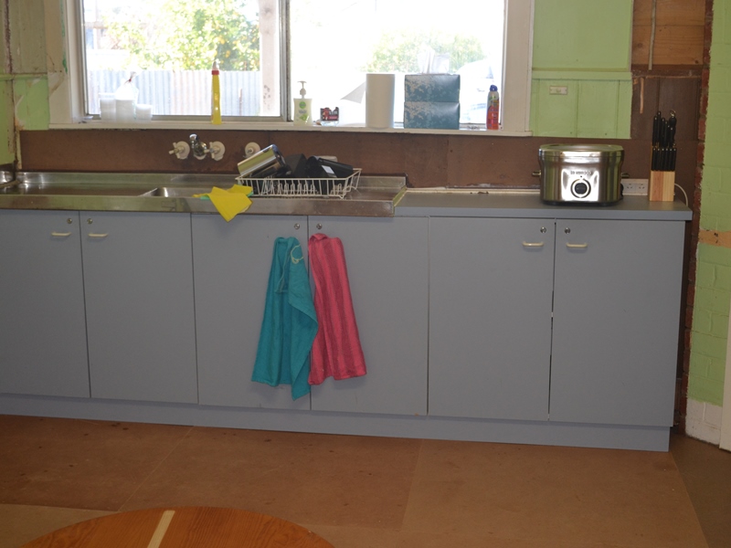 Saturday morning we awoke to a typical Charlton winter’s morning, crisp temperatures but beautiful sunshine. Our plans for the remainder of the weekend were to complete the installation of the temporary kitchen then move on to renailing floorboards and installing underlay in the lounge room with the aim of being in a position to seal the kitchen and lounge floors immediately before leaving for home on Monday.