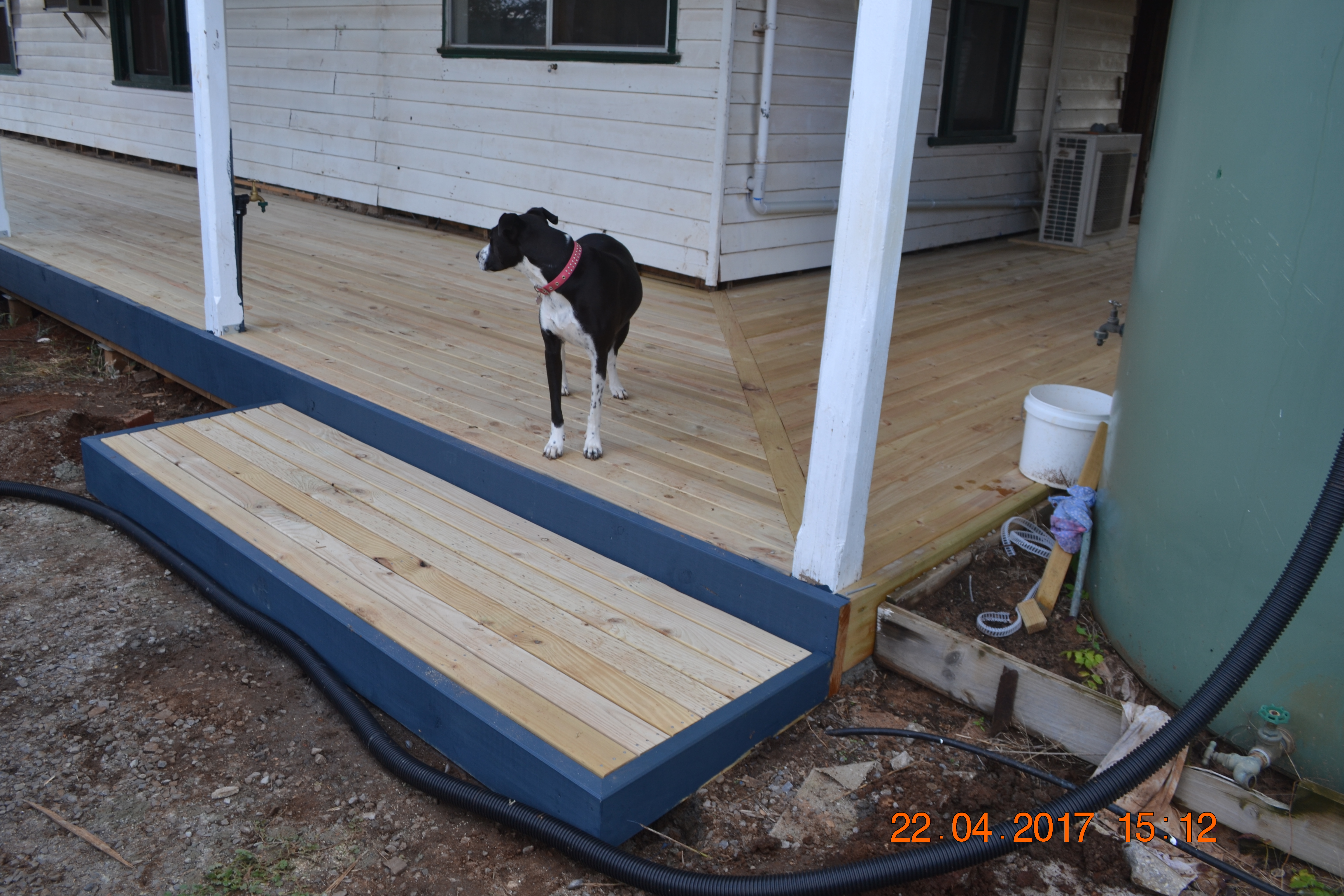 Saturday was the day the deck laying resumed in earnest, and it continued unabated for six days after which I am happy to say IT’S DONE!! Meanwhile Shirleen continued alternating between paint stripping, gardening and recovering from the rotten cold she developed shortly after arriving. We did take some time out on Easter Sunday to enjoy afternoon tea with family.