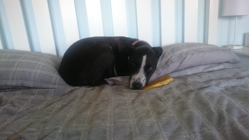 Skylar was going to sand some dado but decided to take her sandpaper to bed instead