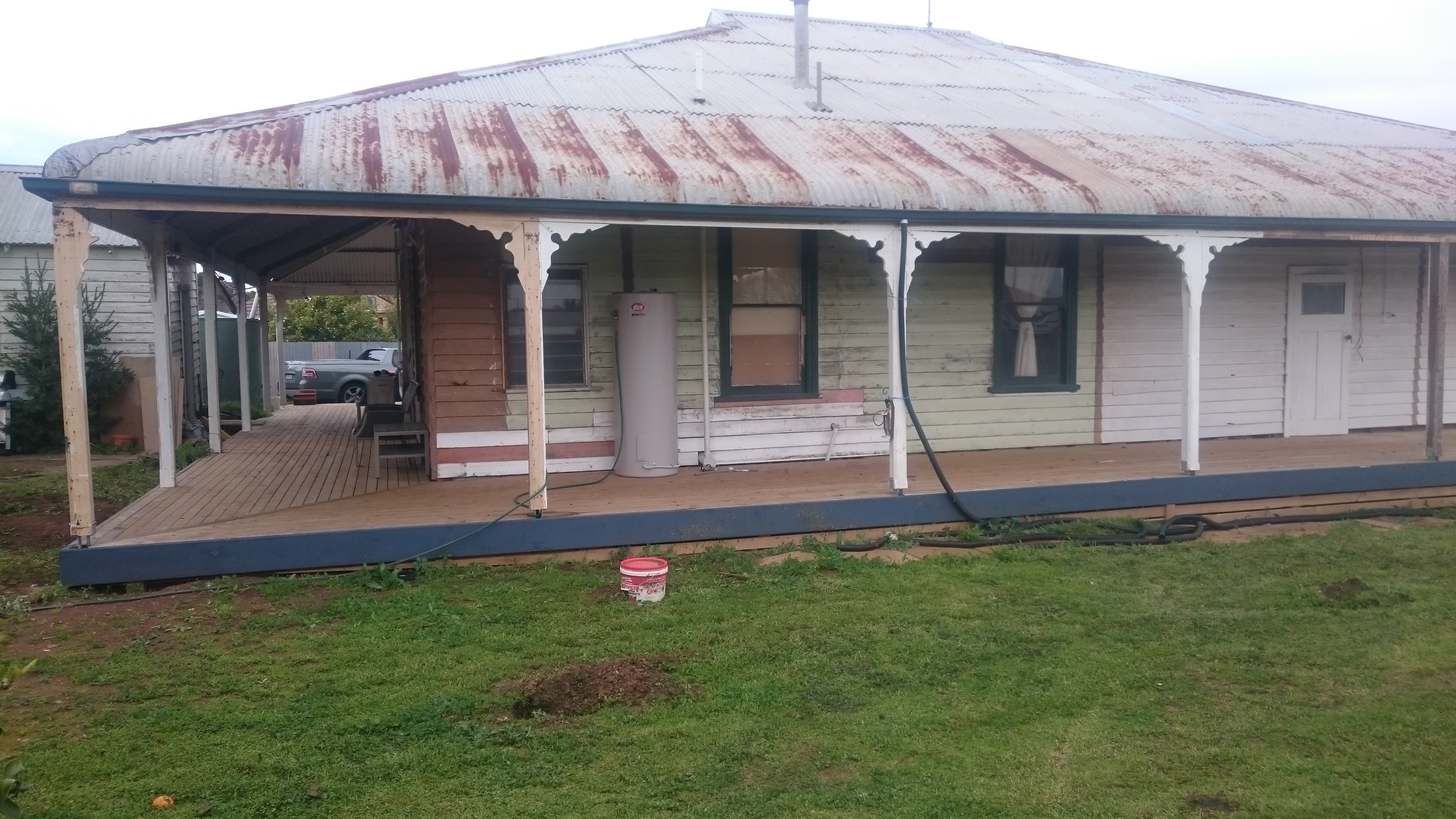 Sunday morning was cold and frosty, but the sun soon warmed the air allowing outside work possible without freezing the fingertips. Sunday’s job was to replace the weatherboards on the west side of the house where they had been removed to install the hot water system plumbing. After finishing I had a little time left to remove some timber which had been fixed over the outside of the front door frame to facilitate a screen door concealing the original Victorian features.