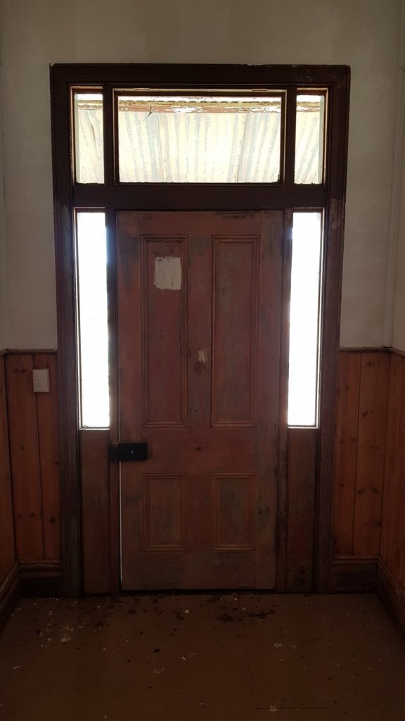 Thursday morning was spent in the garden – Shirleen hacking back a banksia rose next to the driveway which had gone crazy whilst I put the sleepers around the rose garden. Thursday afternoon I returned to work in the entry hall, this time removing the pink and yellow obscure glass flanking the front door so hat we could get more light into what was a very dark entry. The difference was quite amazing.