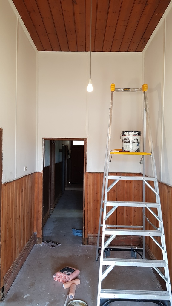 Sunday was the start of an all out attack on stripping the paint from the dado in the entry hall and we worked well into the evening until we had returned the walls to their former unpainted glory.