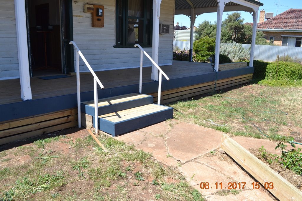 Wednesday saw Phil and I take a trip to Bunnings in Bendigo for Phil to buy some mesh and plywood for the cat cage he was building for Kristy and for me to stock up on paint stripper (given we had decided to strip the dado in the lounge room as well) and some treated pine sleepers for the rose garden. Whilst we were in Bendigo Shirleen and Janet took a trip to Wycheproof for lunch.