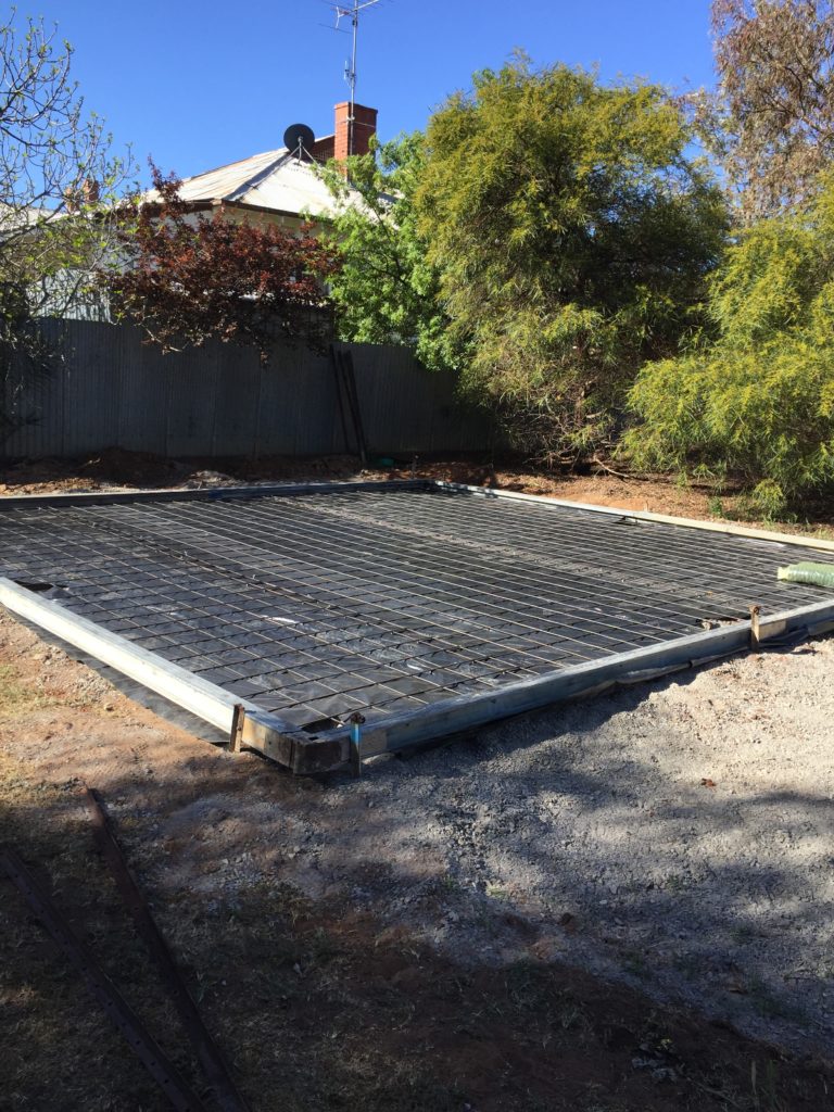 The major tasks for Friday were to repair a leak in the toilet and to mow. Any other work inside the house was restricted given it is hard to paint around the furniture and boxes stored there. There is however light at the end of the tunnel… after the necessary planning and building permits were finally granted, the garage commenced construction, with an unexpected but very welcome visit from the concreter on Saturday to set up for the slab.