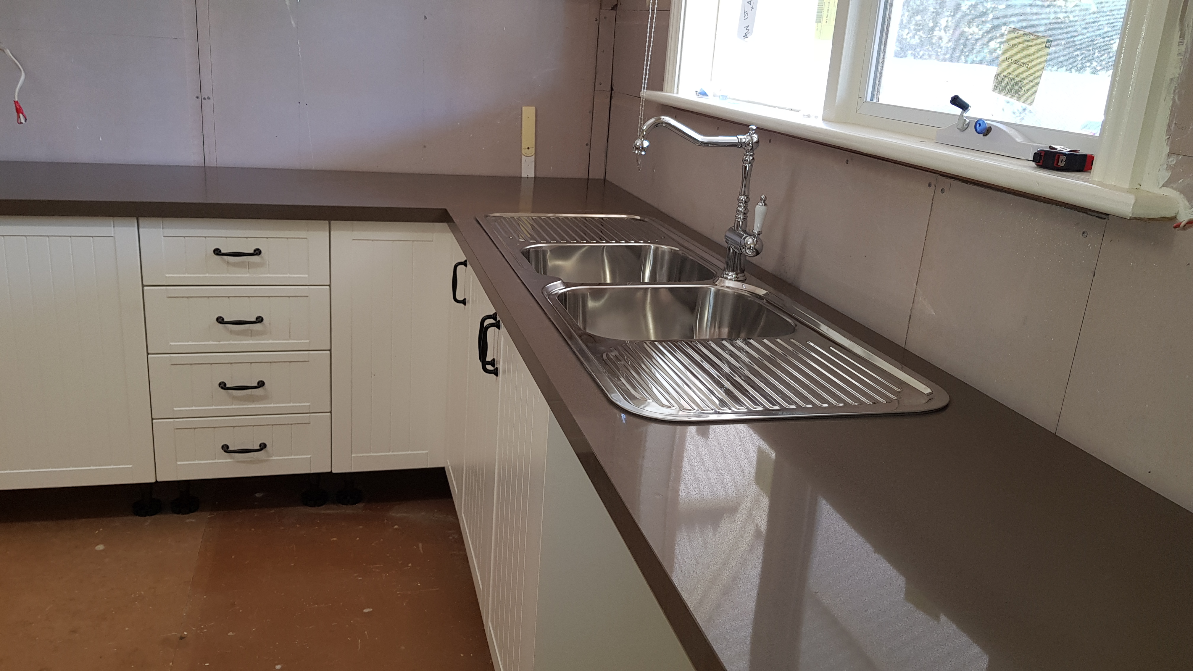 The following 2 weeks back at work went surprisingly fast. I had arranged annual leave for 24th Jan, giving me a 4 day weekend to cut the benchtops to size and install them. The trip up was via Bendigo to pick up the replacement pantry door and the sink. Over the extended weekend we achieved what we set out to do, having completed the installation of both the benchtops and the sink.